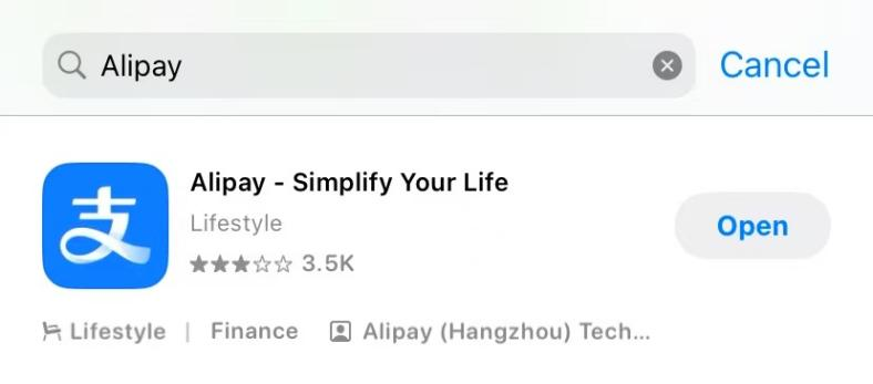 चरण 1: ऐप स्टोर से Alipay डाउनलोड और इंस्टॉल करें