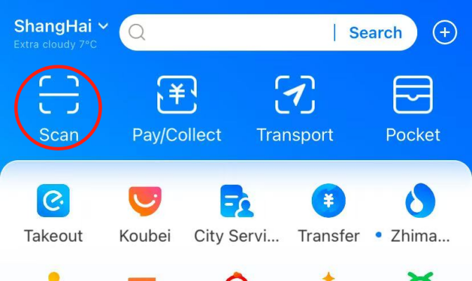 विधि 1: ऊपरी दाएं "⊕" को टैग करें, "स्कैन" पर क्लिक करें, और फिर मर्चेंट के क्यूआर कोड को स्कैन करें