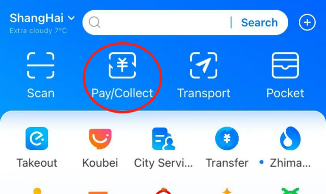 विधि 2: "भुगतान/एकत्र" पर क्लिक करें, फिर व्यापारी को अपना क्यूआर कोड प्रस्तुत करें