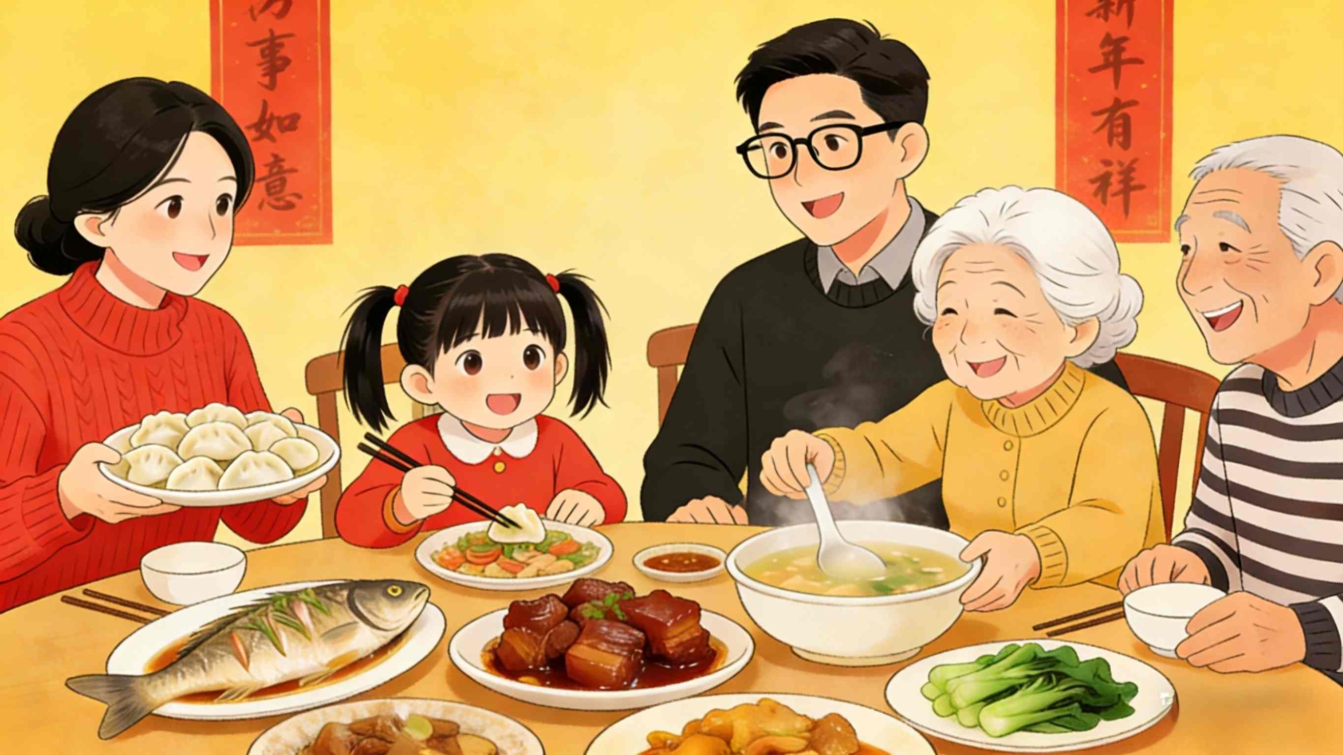 30 जनवरी की शाम को, चीनी कैलेंडर में वर्ष का अंतिम दिन, परिवार पुनर्मिलन रात्रिभोज के लिए इकट्ठा होते हैं, एक-दूसरे की कंपनी में गर्मजोशी और खुशी साझा करते हैं।